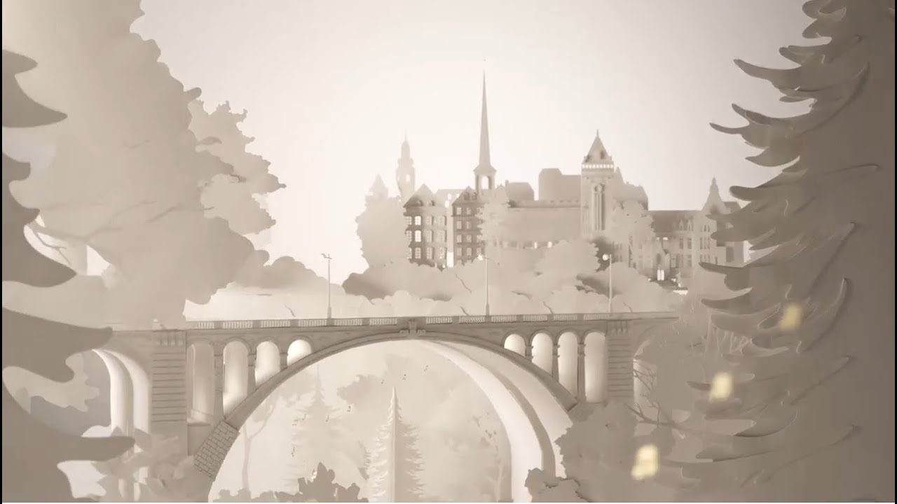 Librement adaptée de la carte de voeux en papier LuXembourg de Miriam Rosner, Monogram (LU), elle a été conçue par l'Agence Binsfeld (LU), réalisée par Adrian & Gidi (NE) et mise en musique par André Dziezuk (LU).